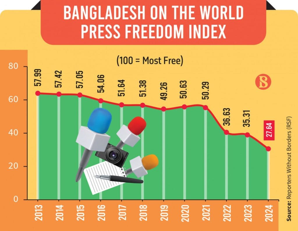 RSF has issued repeated warnings that press freedom in Bangladesh has come under severe strain during the current interim administration. Their statements highlight wrongful accusations against journalists, misuse of legal instruments, and the urgent need for structural reforms. One RSF report noted: