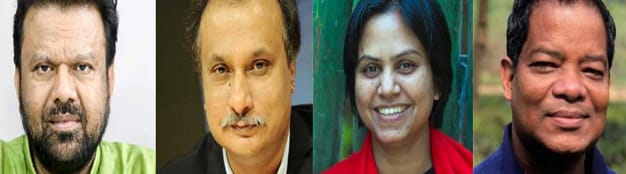 Detained journalists Shyamal Datta, Muzammil Babu, Farzana Rupa and Shakil Ahmed are pictured here: