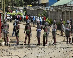Picture shows police trying to disperse opposition supporters during a protest in Nairobi.